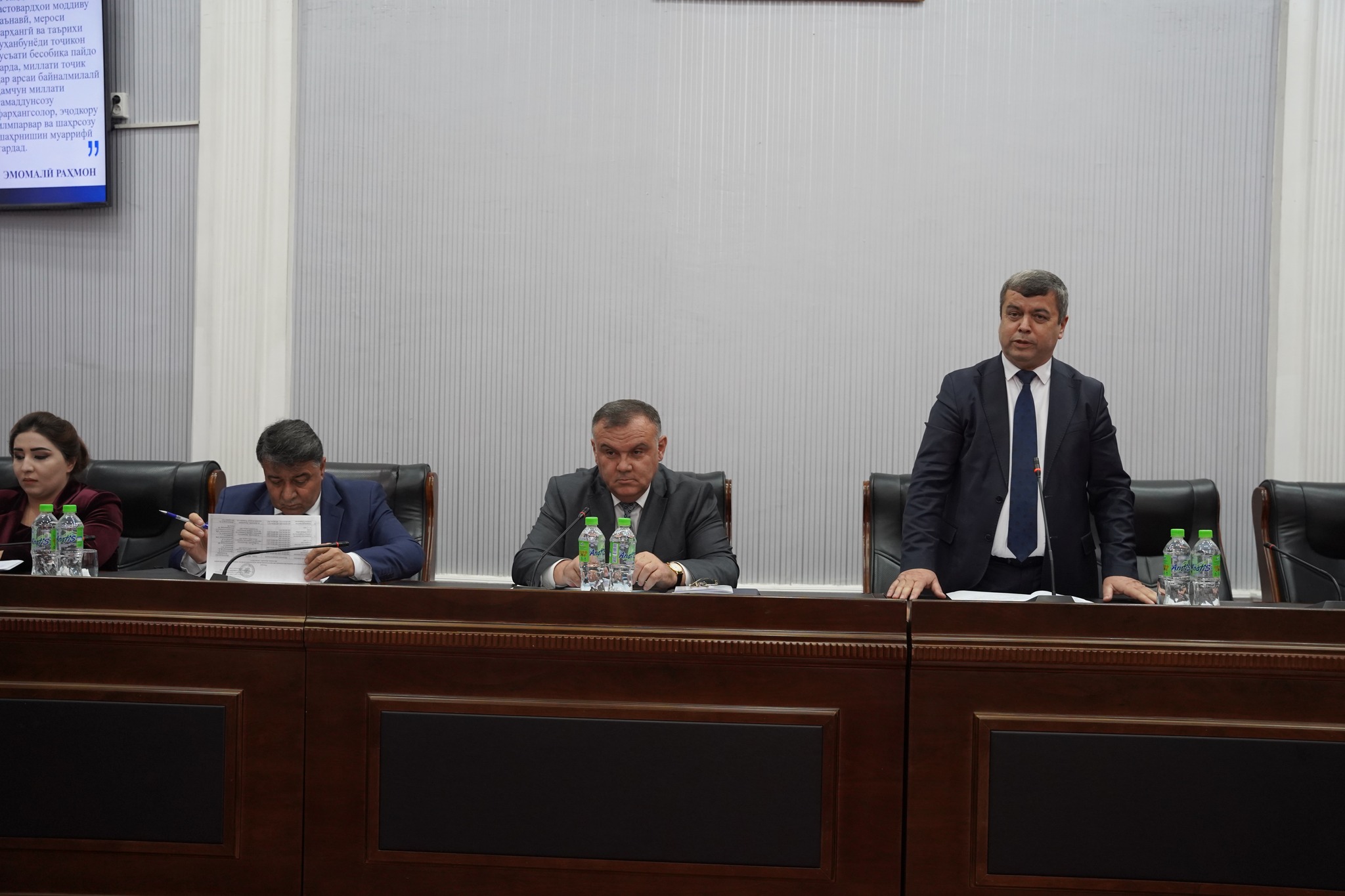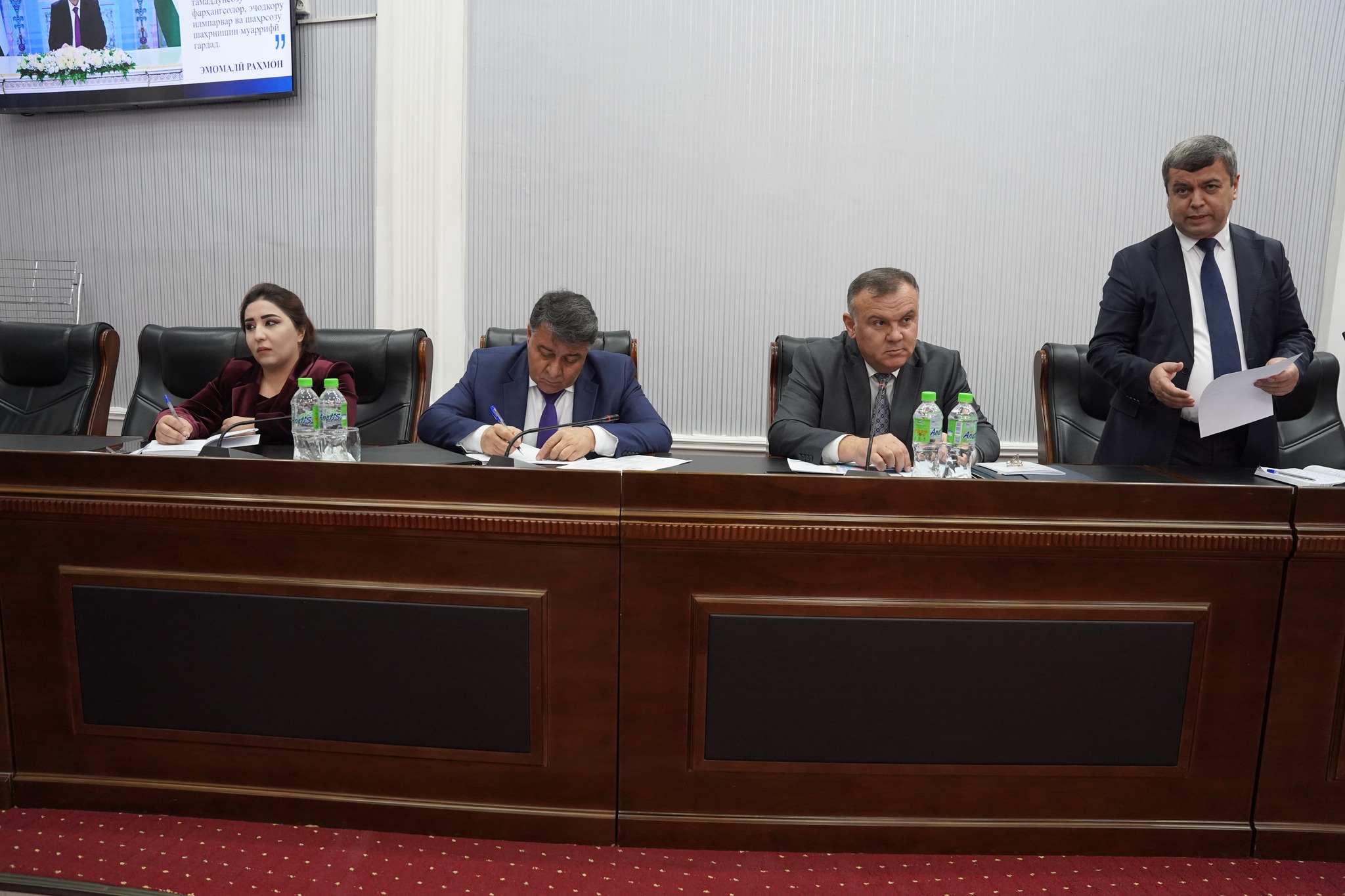Дар кори маҷлис ноибони президенти Академияи миллии илмҳои Тоҷикистон Амонзода И.Т., Мирзораҳимов А., Саломиён М., сардори Раёсати магистратура, аспирантура ва докторантураи (PhD) Қосимзода С.С., раиси Комиссияи олии аттестатсионии назди Президенти Ҷумҳурии Тоҷикистон Давлатзода С.Х. муовини раиси Комиссияи олии аттестатсионии назди Президенти Ҷумҳурии Тоҷикистон Шарифзода М.М., раис, котиб ва муовинони шуроҳои диссертатсионӣ ва дигар шахсони масъул иштирок намуданд.