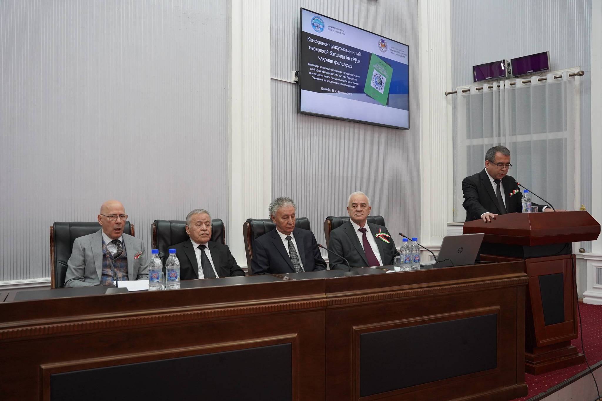 Бо сухани ифтитоҳӣ ноиби президенти Академияи миллии илмҳои Тоҷикистон Саломиён Муҳаммаддовуд Қаюм баромад намуда, вобаста ба натиҷаҳои бадастомада дар самтҳои асосии таҳқиқоти илмӣ, ба мисли таърих, забоншиносӣ, адабиёт, ҳуқуқ, фалсафа, иқтисод, фарҳангшиносӣ ва соҳаҳои дигар, маълумоти муфассал пешниҳод кард.