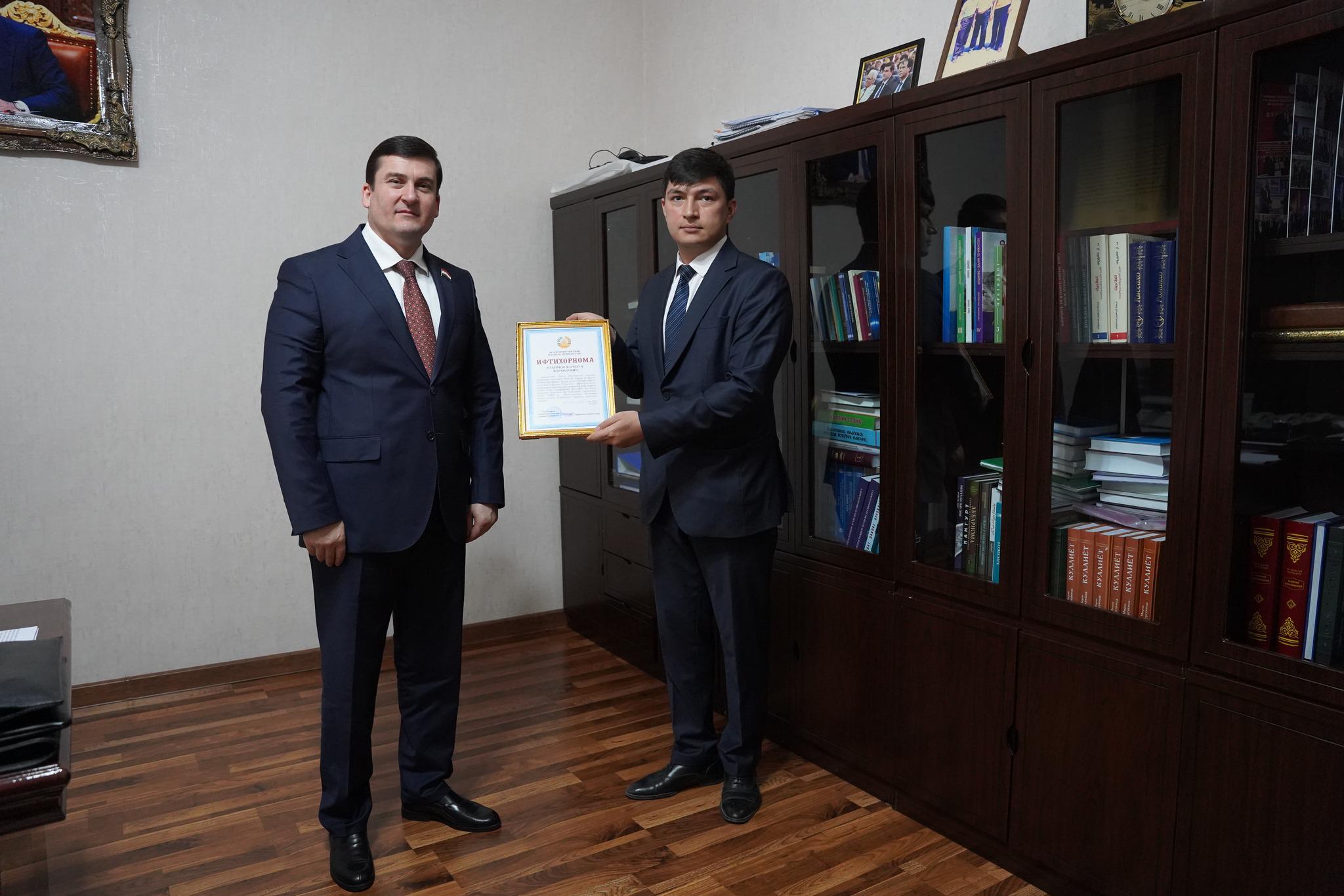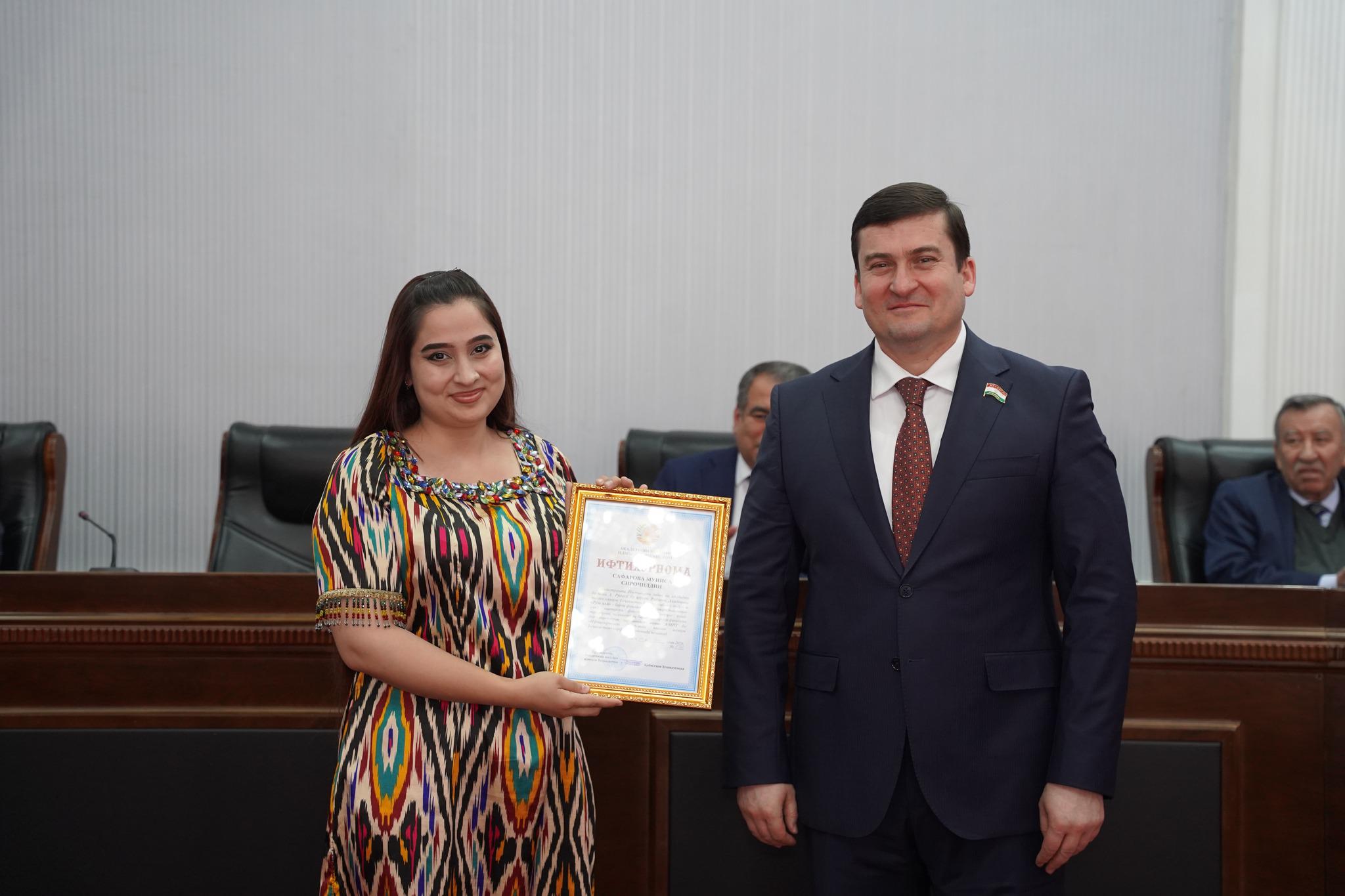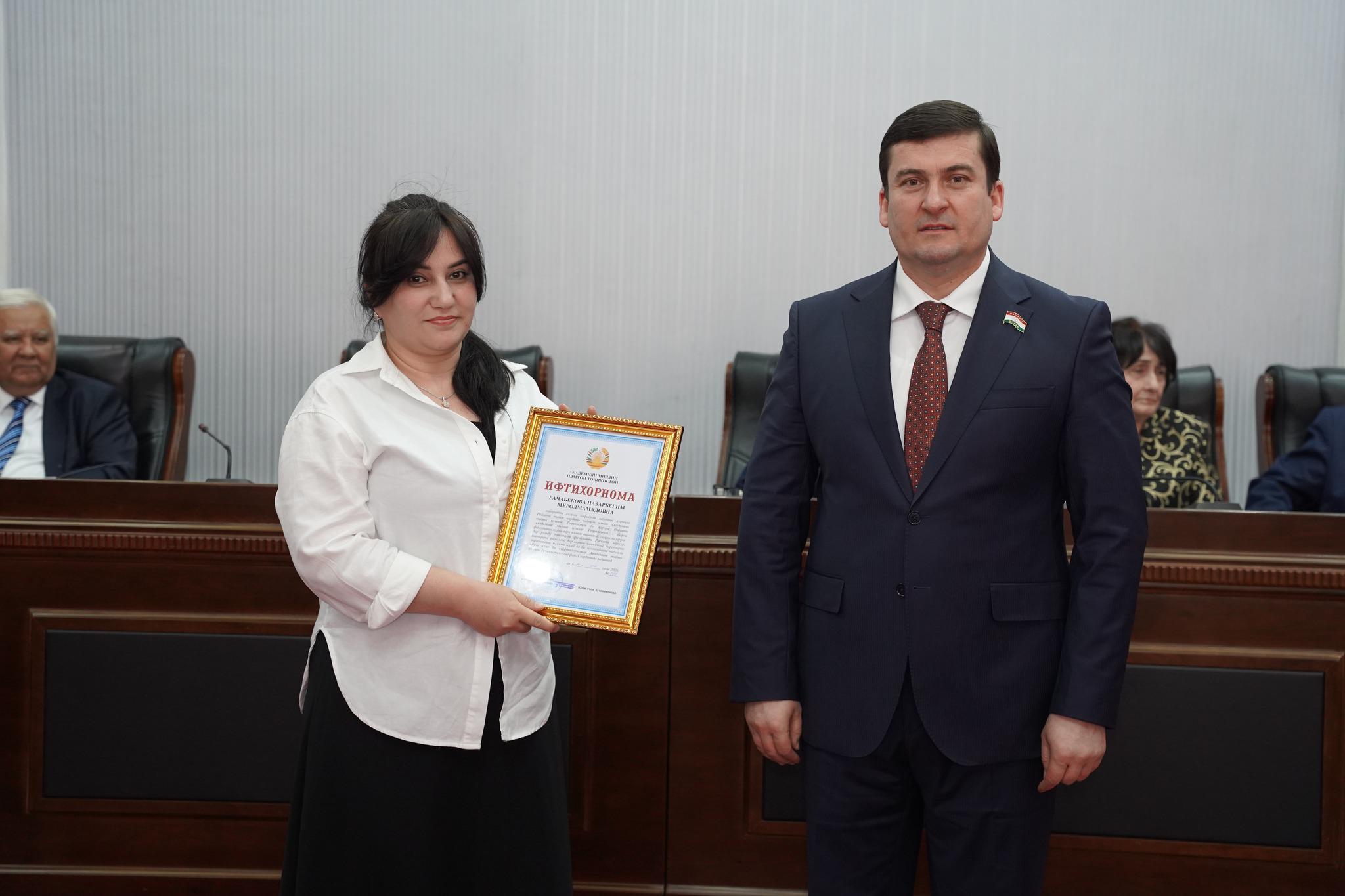 Дар фарҷом як зумра аз кормандон бо Ифтихорномаи Раёсати Академияи миллии илмҳои Тоҷикистон қадрдонӣ гардида, ҳамзамон як зумра аз олимони ҷавон барандаи ҷоизаҳои Раиси шаҳри Душанбе гардиданд.